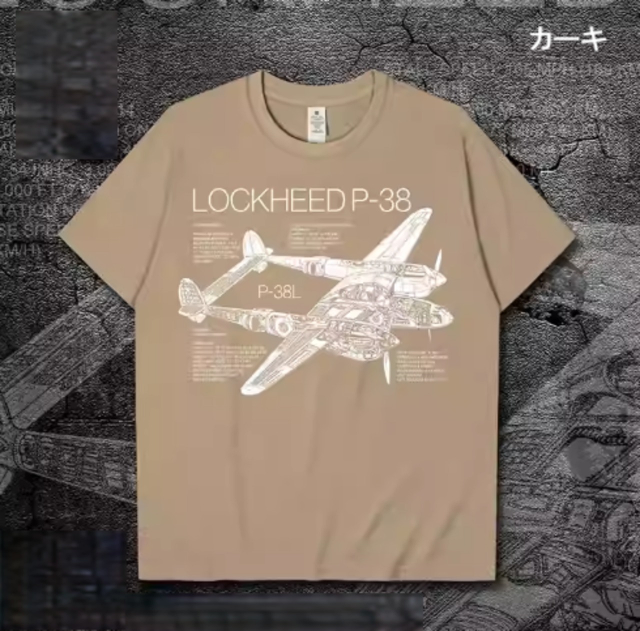 ミリタリーテイストを取り入れたP-38 グラフィックプリント クルーネック 半袖Tシャツは、スタイリッシュなデザインが魅力です。P-38ライトニングのテクニカルな図面が、さりげなく個性を主張。Tシャツ一枚でもサマになる、こだわりの一着です!