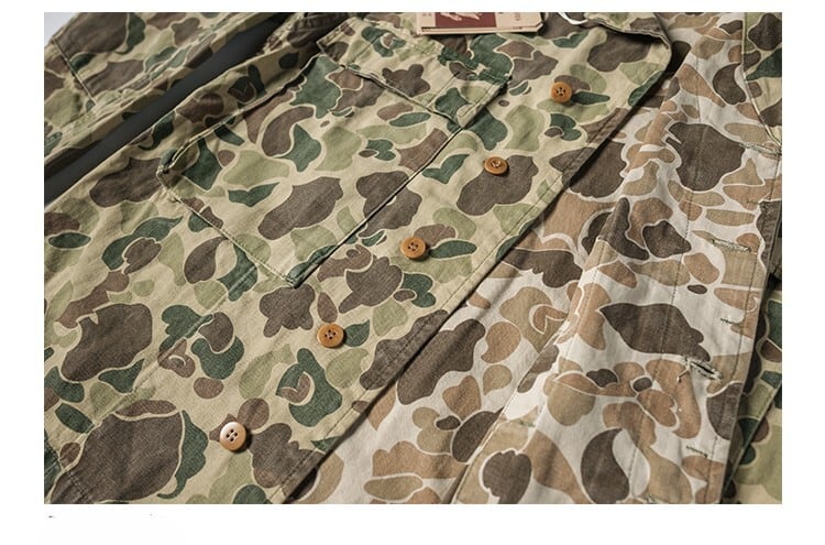 M-43 ダックハンティング迷彩ジャケットレプリカは、ミリタリーテイスト溢れる一着です!落ち着いた迷彩柄は、普段使いからアウトドアシーンまで幅広く活躍します。カジュアルな着こなしにも合わせやすく、様々なコーディネートが楽しめます!