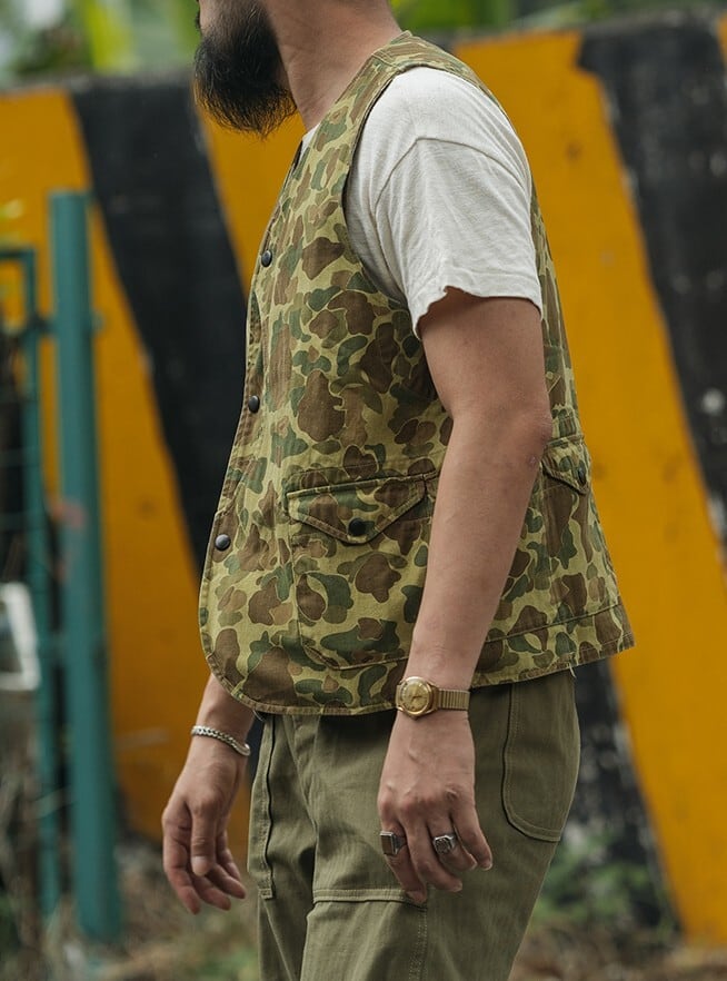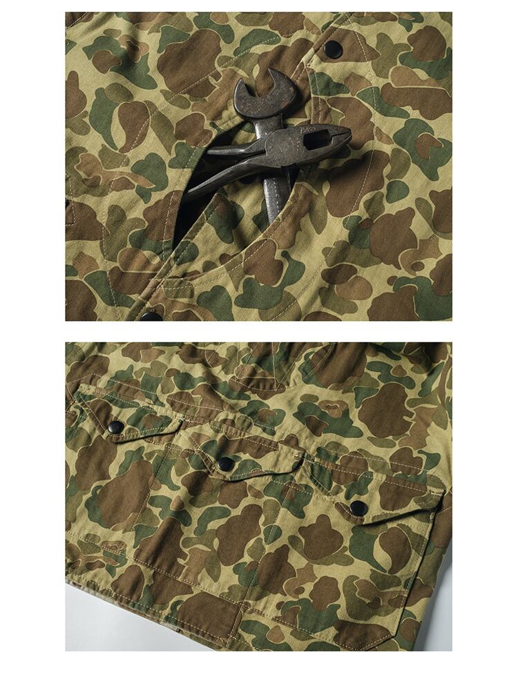 ミリタリーの雰囲気と機能性を両立したベスト。USMCタクティカルベストレプリカは、ダックハンティング迷彩柄が目を惹くデザイン。シンプルながらも存在感のあるアイテムで、様々なコーディネートに合わせやすく、着回し力も抜群です!