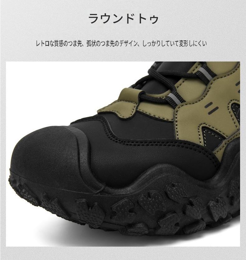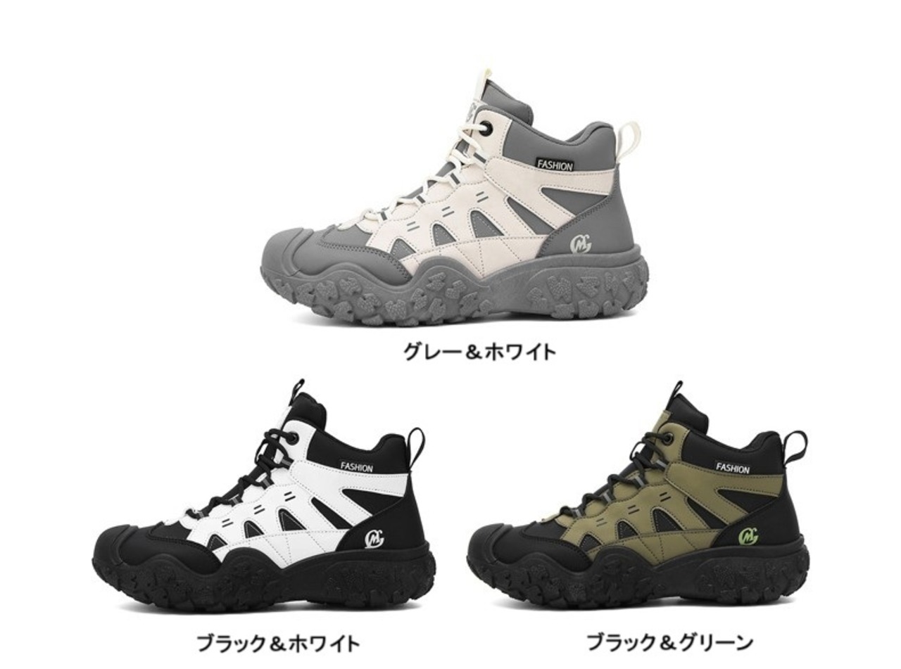 このハイカットスニーカーは、アウトドアアクティビティに最適な一足です!防水性、耐摩耗性、滑り止め機能を備え、登山やハイキング、キャンプなど、あらゆるシーンで活躍します。スタイリッシュなデザインは、普段履きにもぴったり。アクティブなあなたをサポートします!