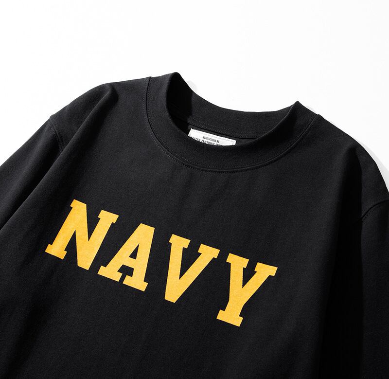 280gのしっかりとした生地感と、胸元に目を惹く「NAVY」ロゴが特徴の長袖Tシャツ。シンプルながらも存在感のあるデザインは、様々なボトムスと相性抜群!カジュアルなデイリーユースから、少しラフな休日スタイルまで幅広く活躍します。一枚で着ても、ジャケットやシャツとのレイヤードスタイルも楽しめます。着心地の良さも魅力の一つです。