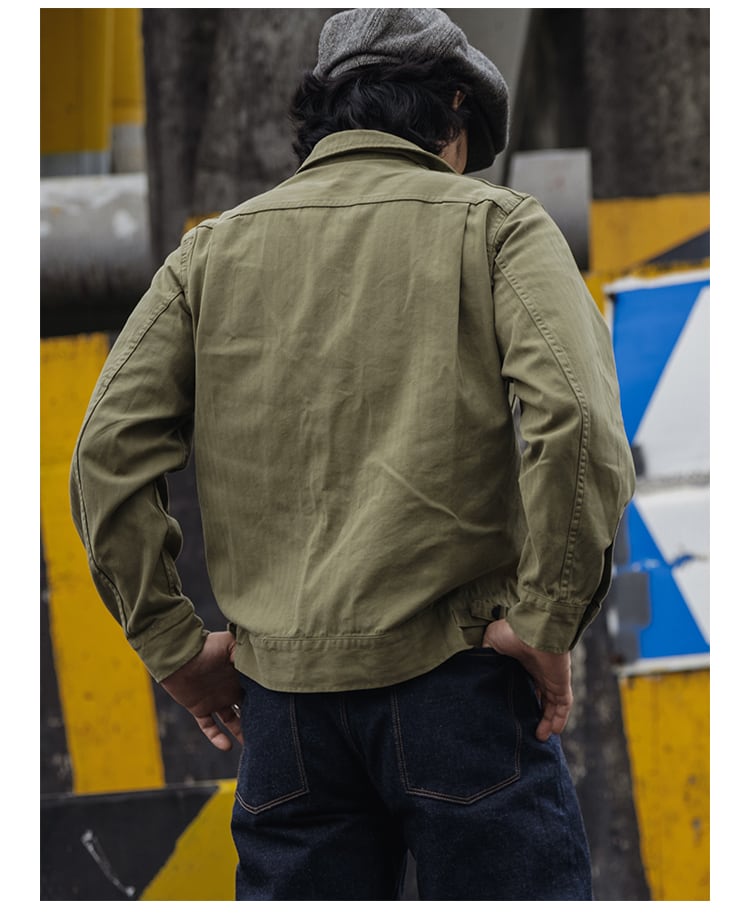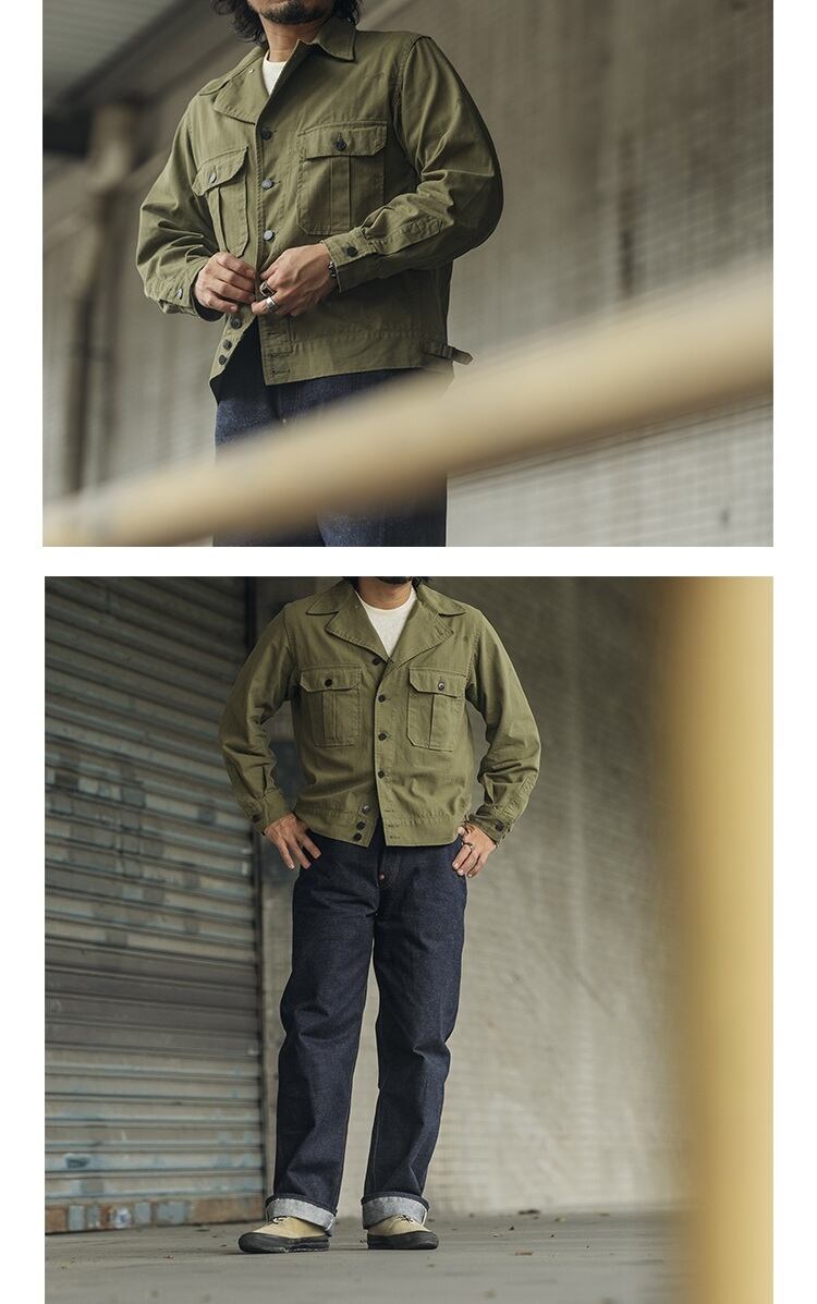ミリタリーテイストのジャケットは、カジュアルな着こなしに最適です!