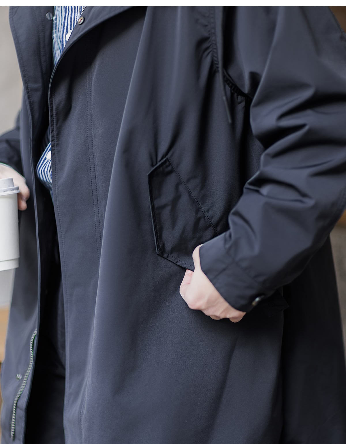M-51パーカーは、ミリタリースタイルを手軽に楽しめるミドル丈コート。程よい丈感で動きやすく、普段使いに最適です。落ち着いた色合いで、様々なコーディネートに合わせやすいのが魅力です。