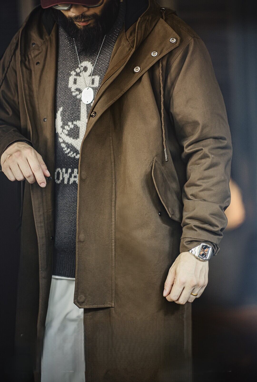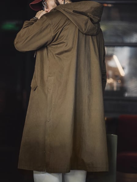 起毛フード付きミドル丈コートは、大人のカジュアルスタイルに最適な一着。ミドル丈なので、ボトムスを選ばず、様々なコーディネートに合わせやすいのが魅力です。普段使いはもちろん、アウトドアシーンにも活躍します。