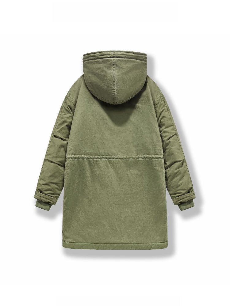 ミリタリースタイルを格上げする、フード付きミドル丈コート。無骨なデザインの中に、洗練されたシルエットが光る一着です。デイリーユースはもちろん、アウトドアシーンにも対応。カジュアルながらも、都会的な着こなしを演出します。
