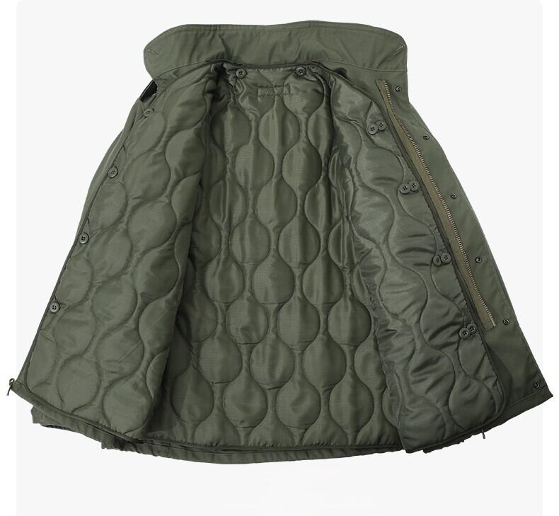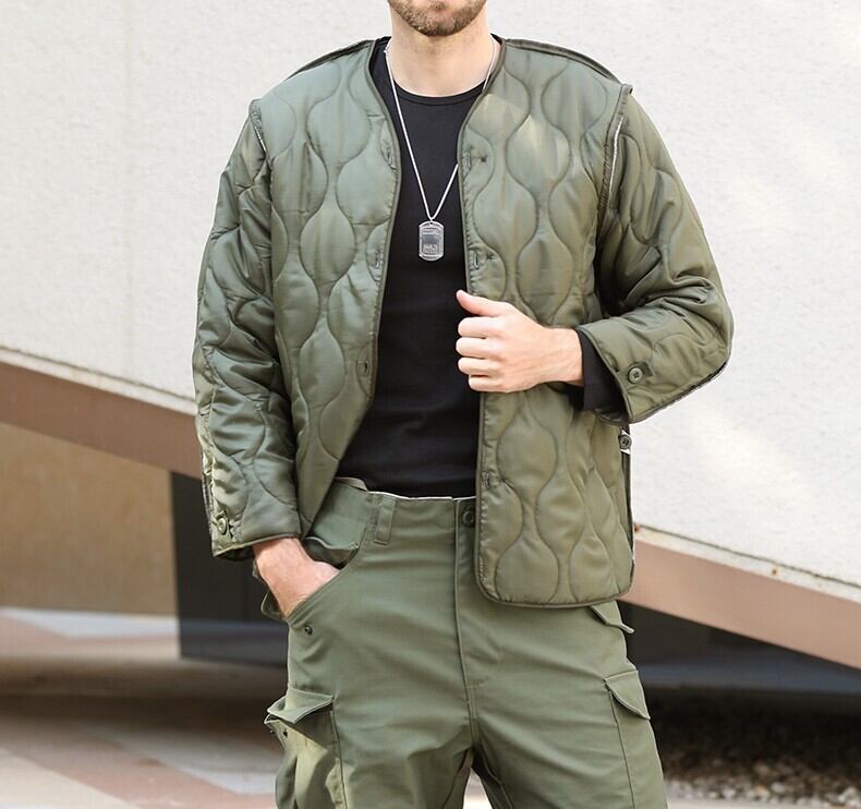 お手持ちのM-65、M-43、M-51ジャケットに取り付け可能なライナーは、気温の変化に対応できる便利なアイテムです。外出先で寒さを感じた時にも、手軽に装着できます。ミリタリーファッションがお好きな方におすすめです。