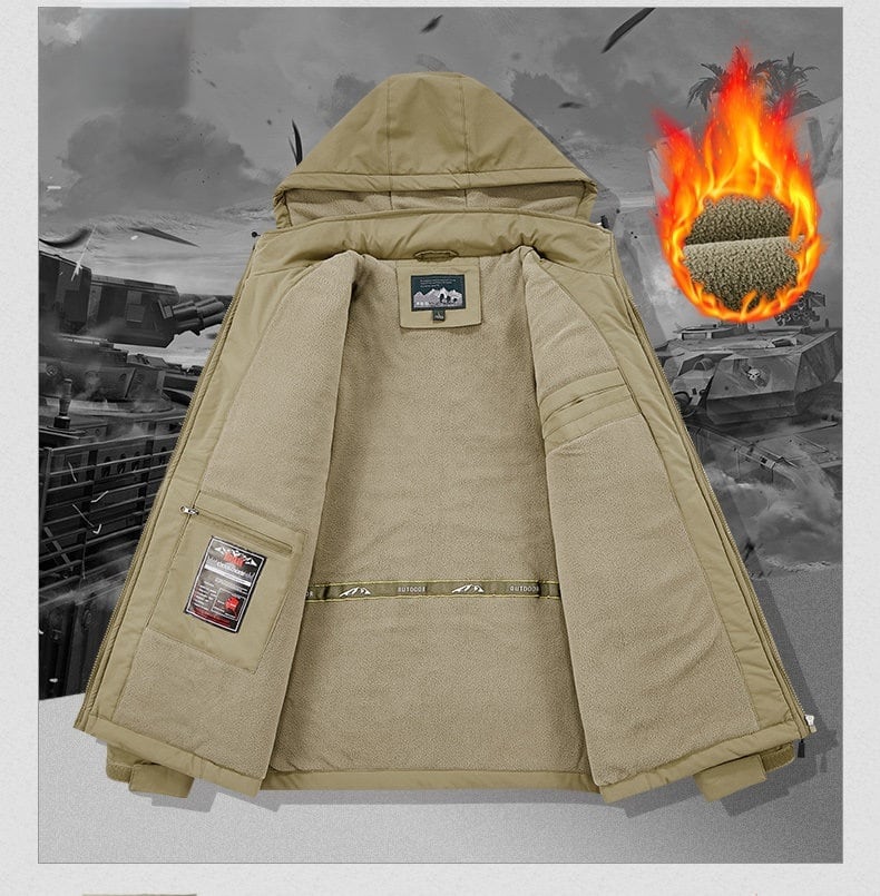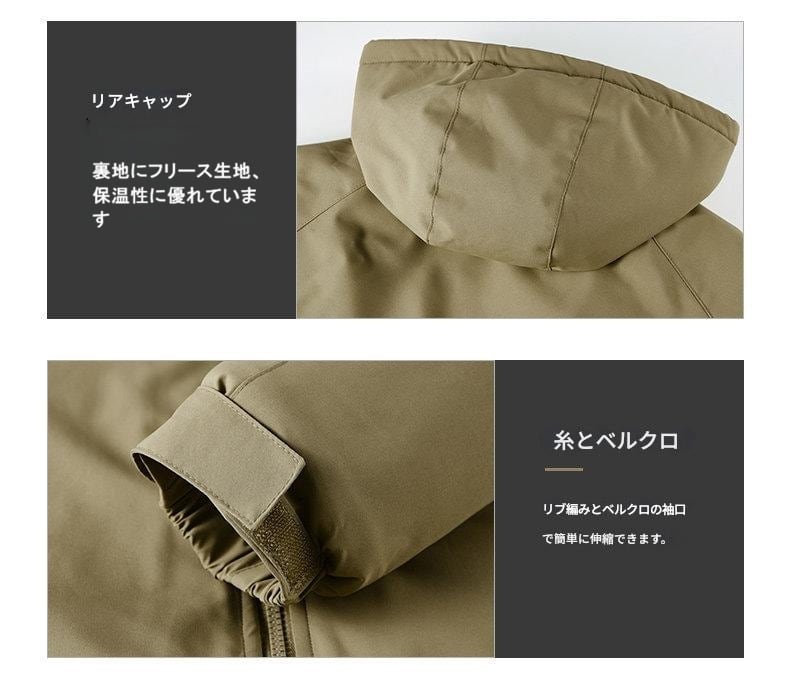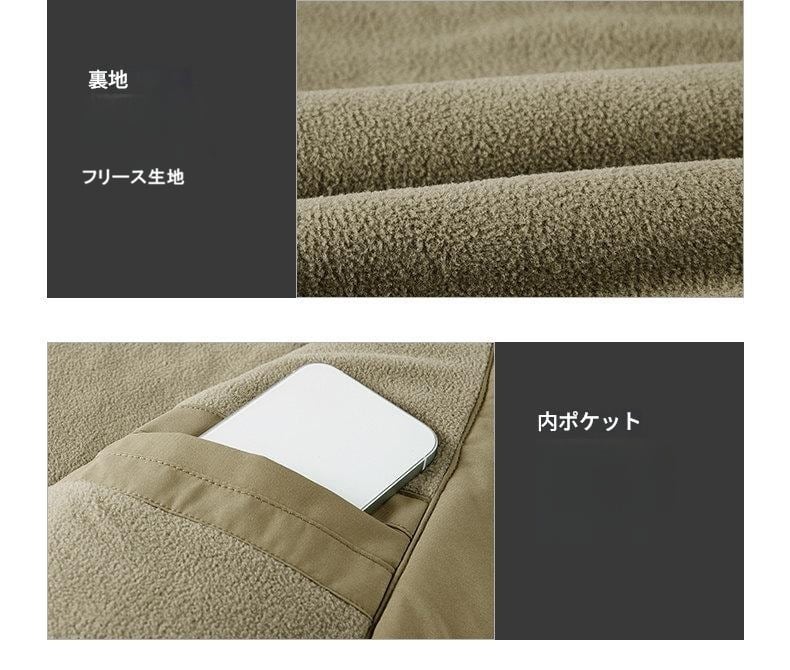 アウトドア・ミリタリースタイルに最適なアウター。裏地はフリース素材で、暖かく快適な着心地を提供します。秋口から冬にかけての普段使いはもちろん、アウトドアやレジャーにも最適。防風機能も備わっており、機能性とファッション性を両立したアウターです。