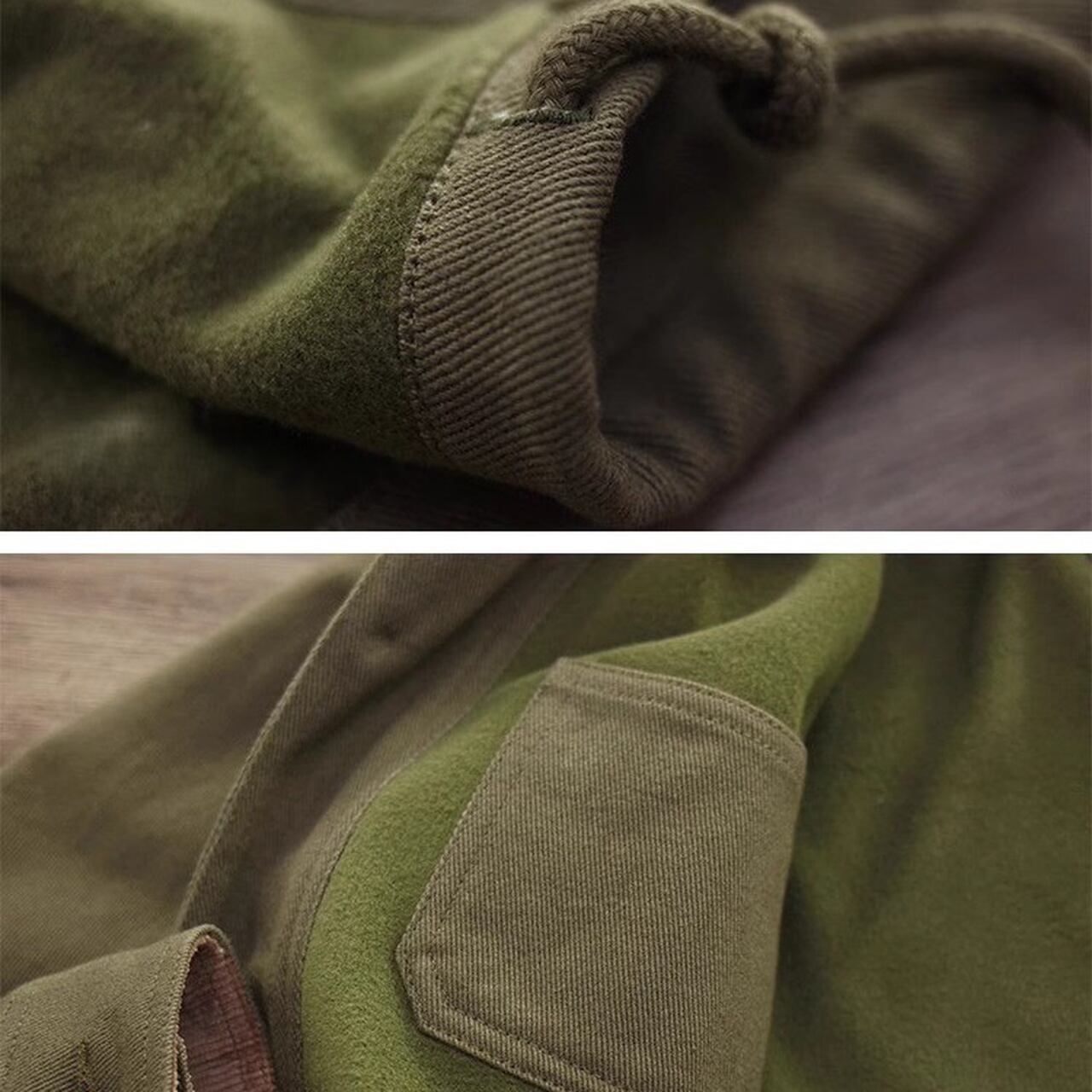 秋冬に最適なミリタリージャケット。レトロなデザインと複数のポケットが特徴です。アメカジスタイルに合わせやすく、普段使いからアウトドアシーンまで幅広く活躍します。着こなしに深みと個性をプラスしたい方におすすめです!